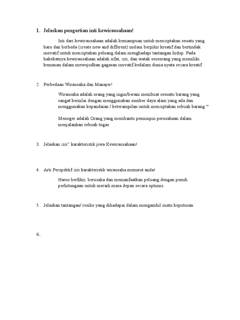 Inti dari pengertian wirausaha adalah.