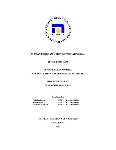 Pkm Keripik Wortel / Pendugaan Umur Simpan Keripik Wortel Dalam Kemasan Polipropilen Oleh Ifah Latifah F Pdf Download Gratis : Sistematika pkm kewirausahan ini ditulis menggunakan jenis huruf times new roman dengan font 12 adapun untuk jarak antar barisnya ialah 1,15 dengan spasi.
